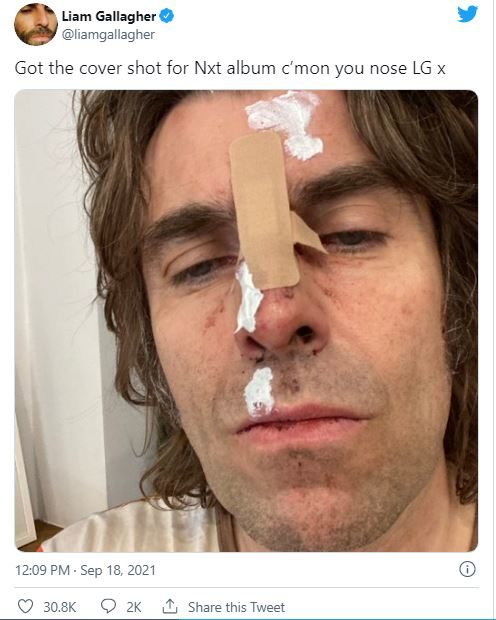 Un llamativo hecho tuvo como protagonista a Liam Gallagher, después que el ex cantante de Oasis compartiera en sus redes sociales una imagen suya con heridas y cortes en la cara.